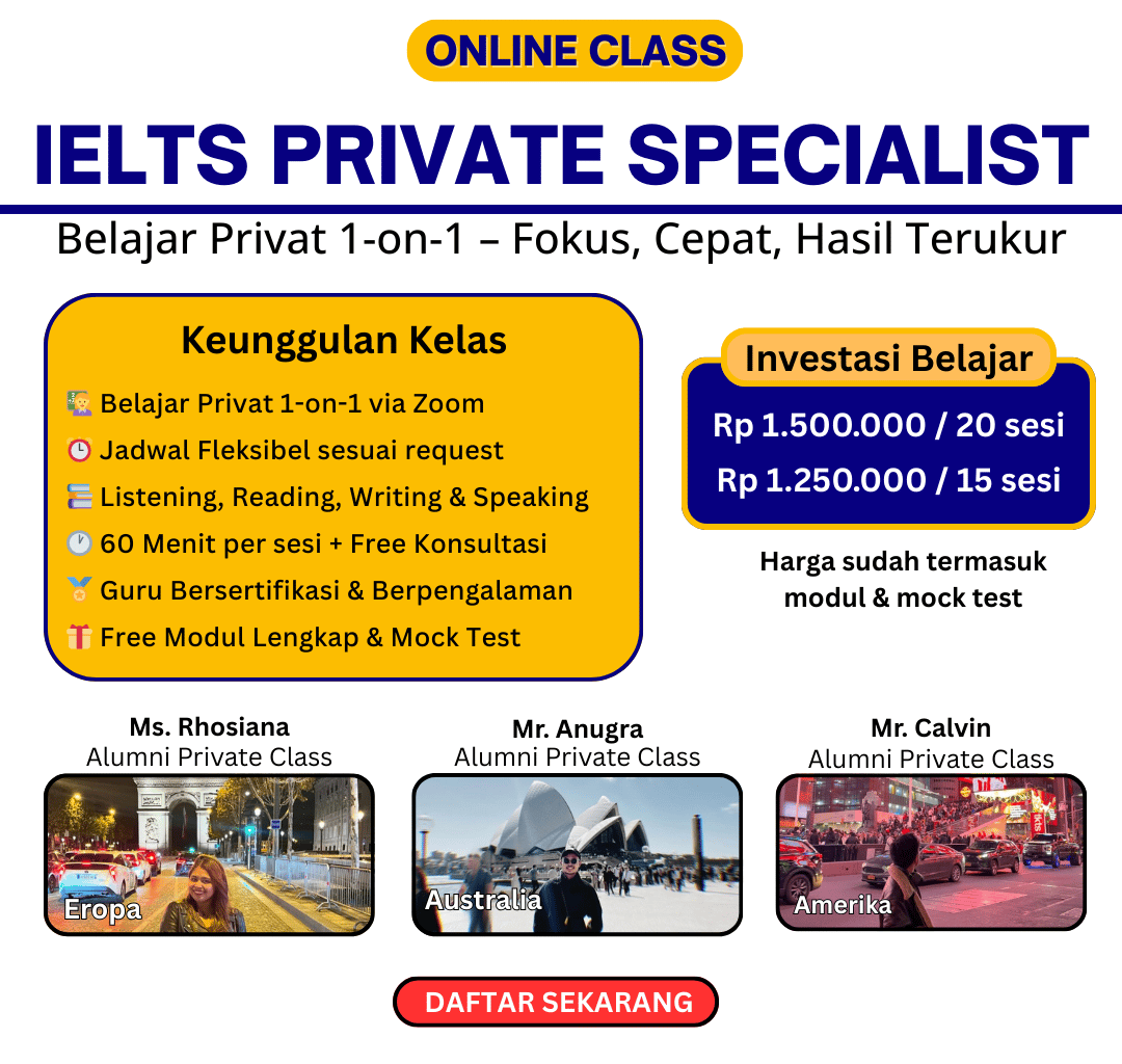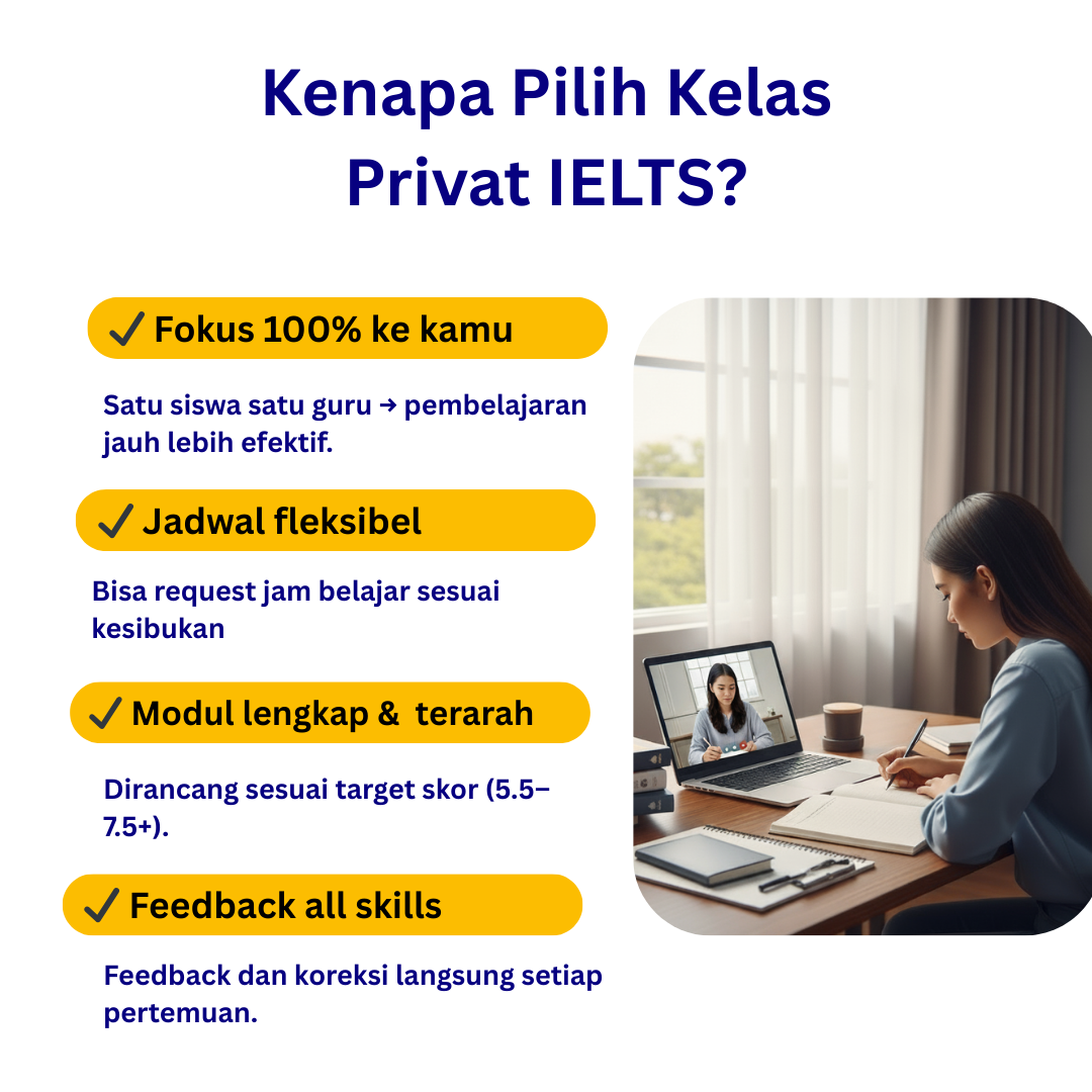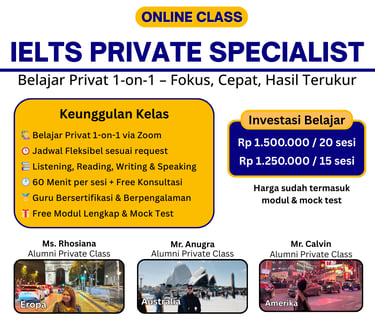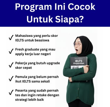 IELTS Hunter adalah lembaga bimbingan belajar IELTS yang berfokus pada kelas privat (1 siswa 1 guru), dirancang untuk membantu siswa mencapai target skor IELTS dengan lebih cepat, efektif, dan terarah.